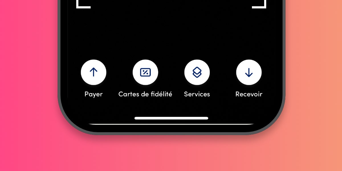 Les boutons "Services" et "Recevoir" restent inchangés. Vous pouvez les utiliser pour accéder aux services de l'appli ou pour recevoir de l'argent facilement.