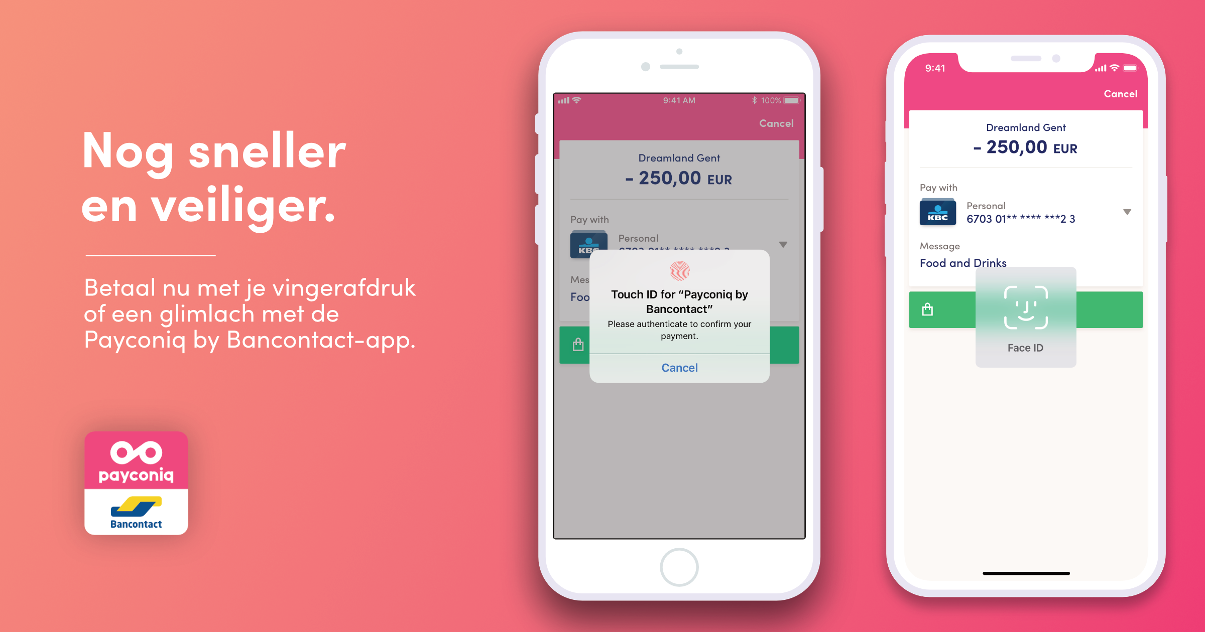 De Payconiq by Bancontact-app maakt mobiel betalen steeds zo eenvoudig mogelijk. Vandaag dus weer, met een nieuwe functionaliteit: je hoeft vanaf nu geen pincode meer in te geven bij een betaling, maar je kan simpelweg kiezen voor vingerafdruk of gezichtsherkenning.